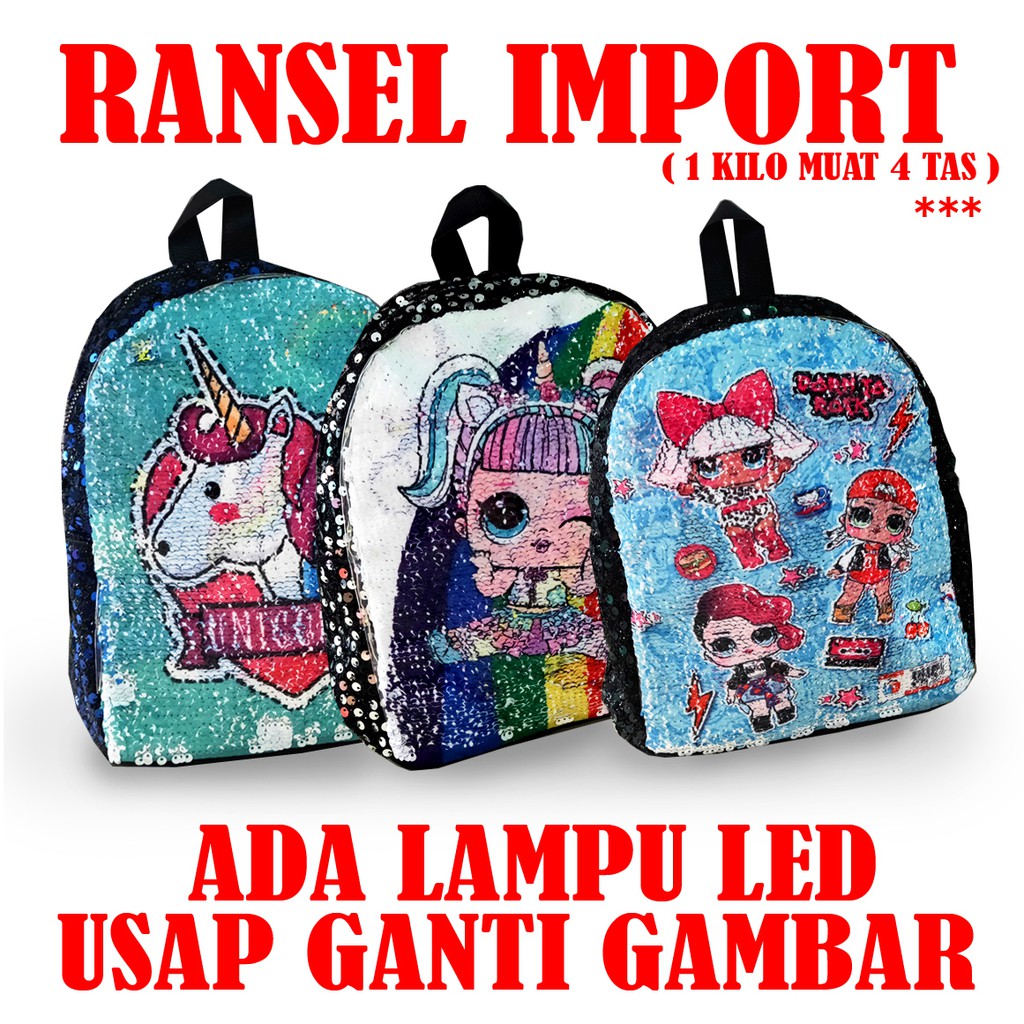 TAS ANAK IMPORT HQ #6908 - TAS BATAM - LOL - PONY - UNICORN - LAMPU LED - USAP BERUBAH GAMBAR | Shopee Indonesia
