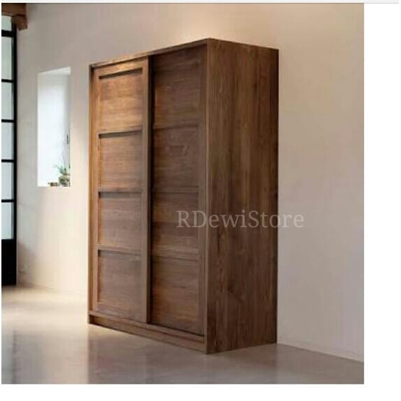 Lemari baju, lemari pakaian kayu jati minimalis pintu 2 sleding | Shopee Indonesia