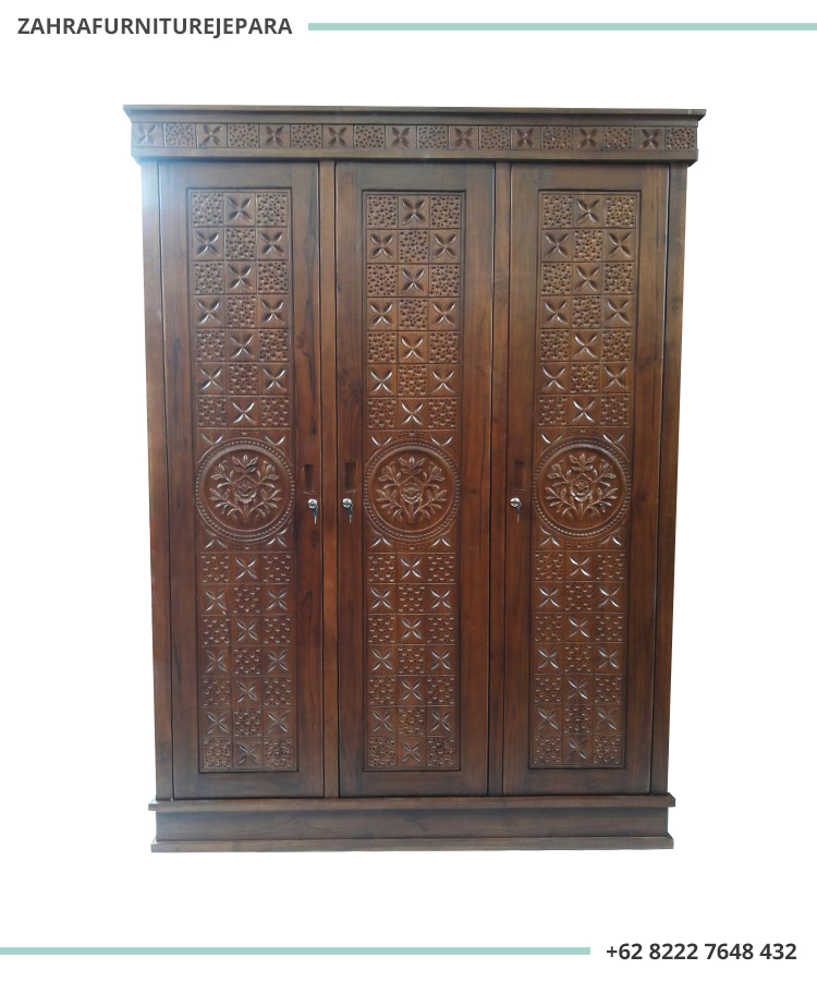 LEMARI PAKAIAN JATI UKIR MINIMALIS 3 PINTU | JUAL FURNITURE MURAH