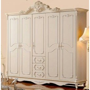 Jual Lemari Pakaian 5 Pintu Ukir Eropa Putih | Furniture Duco Klasik