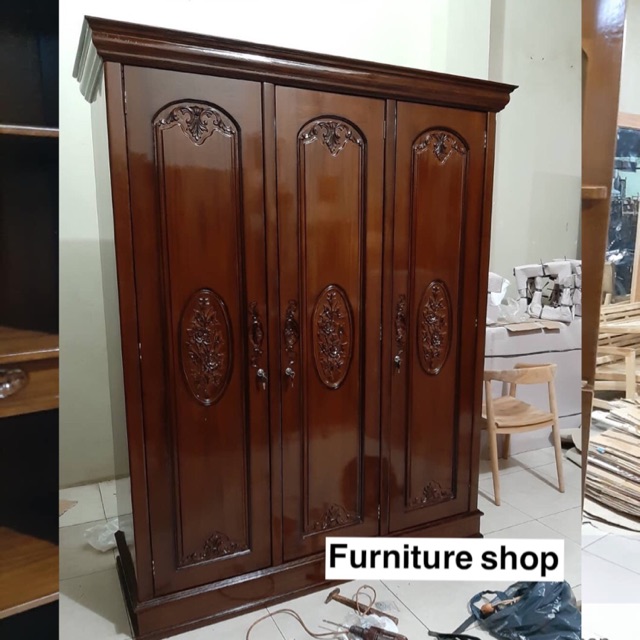 Lemari pakaian mawar pintu 3 kayu jati | Shopee Indonesia