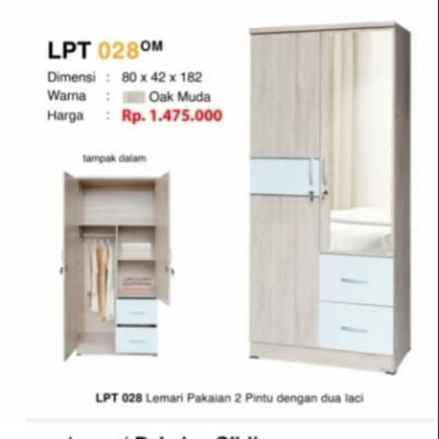 Lemari pakaian 2 pintu plus laci. 1pintu ada cermin sesuai gambar asli ukuran 80x42x182cm. | Shopee Indonesia