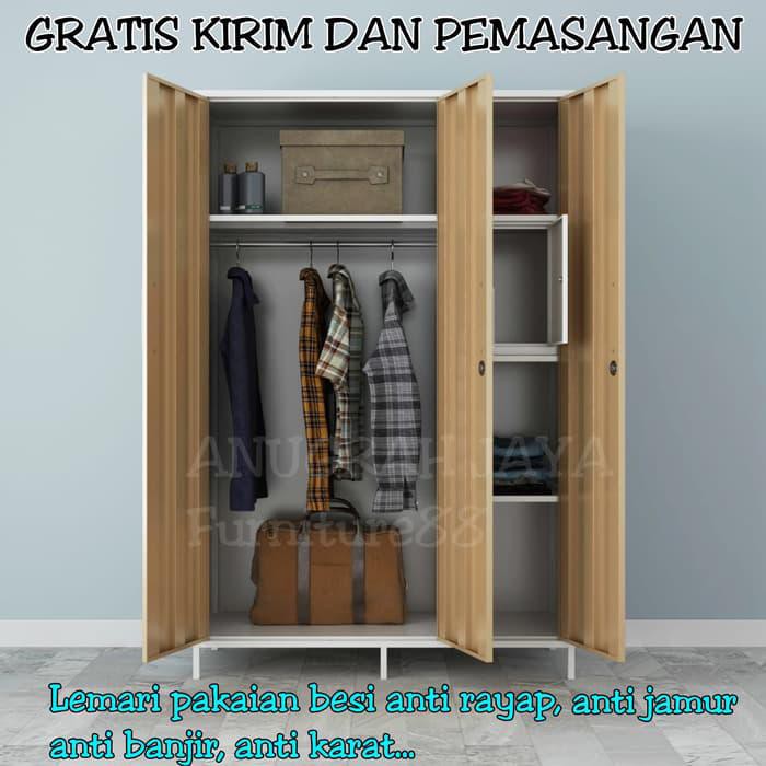 Lemari Pakaian Besi 3 Pintu Lemari Besi Lemari Anti Rayap Tahan Banjir - Mebel - 781174575