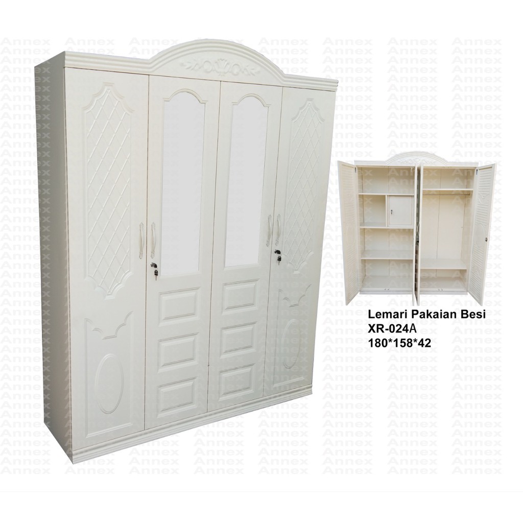 Lemari pakaian lemari baju besi 4 pintu white shabby anti rayap kokoh import | Lazada Indonesia