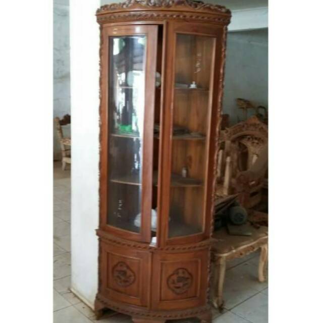 lemari sudut ukir lemari sudut lemari pojok pajangan kaca hias lemari sudut minimalis mewah di lapak Linggar Jati Meubel | Bukalapak