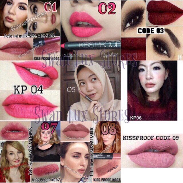 PROMO Kissproof Matte Ori READY Lengkap no 01-19 ecer/grosir BEBAS PILIH WARNA Kiss Proof Menow | Shopee Indonesia