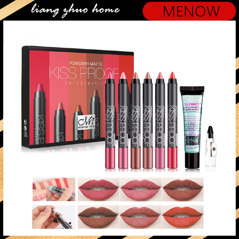 MENOW Brand Make up set 6 kiss proof Lipstick & Pencil sharpener & remover Cosmetic combination Waterproof Lip make up | Shopee Malaysia