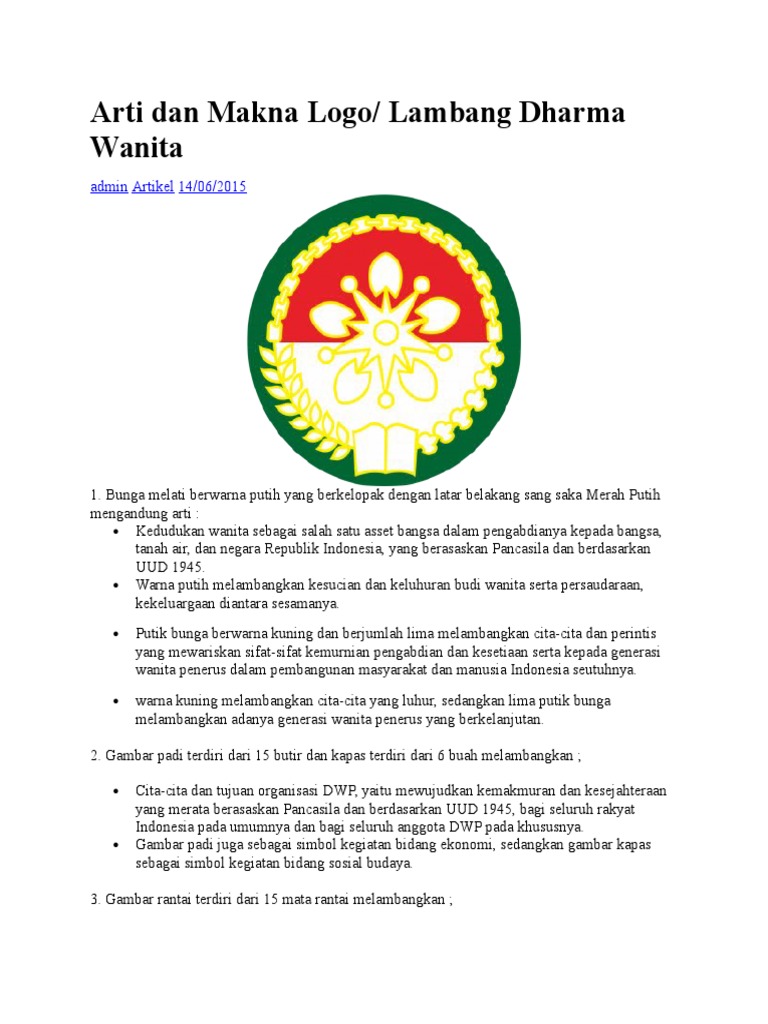 SEJARAH PERINGATAN HARI DHARMA WANITA PERSATUAN DAN LOGO DWP INDONESIA - caracg