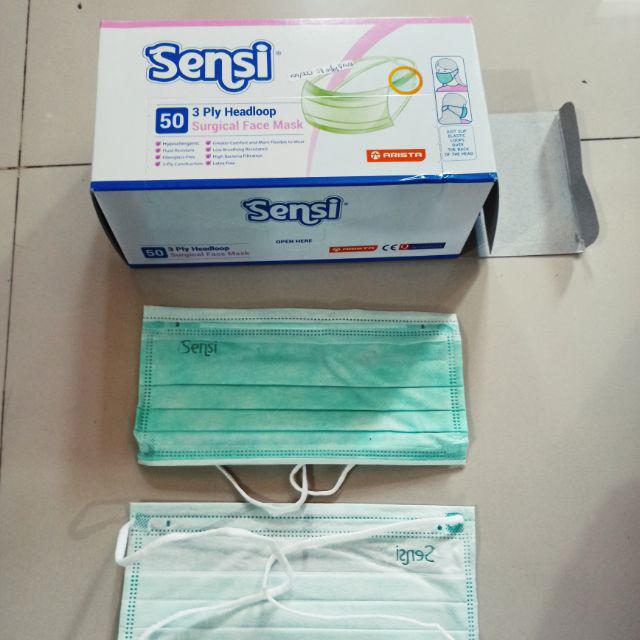 MASKER SENSI 3PLY EARLOOP SURGICAL FACE MASK BOX ARISTA di Lapak Karlina Nathania | Bukalapak