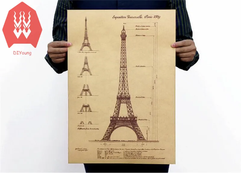 Menara Eiffel poster Vintage gambar Desain Retro digambar tangan sketsa peta bangunan Stiker Dinding Mural dekorasi 51*35cm|desain stiker dinding|peta stiker dindingdesain - AliExpress