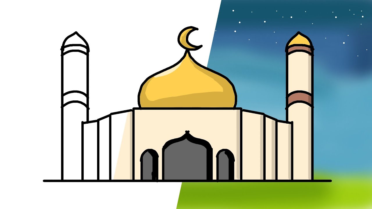 Cara menggambar Pemandangan pulau dan masjid yang mudah | Drawing scenery of mosque - YouTube
