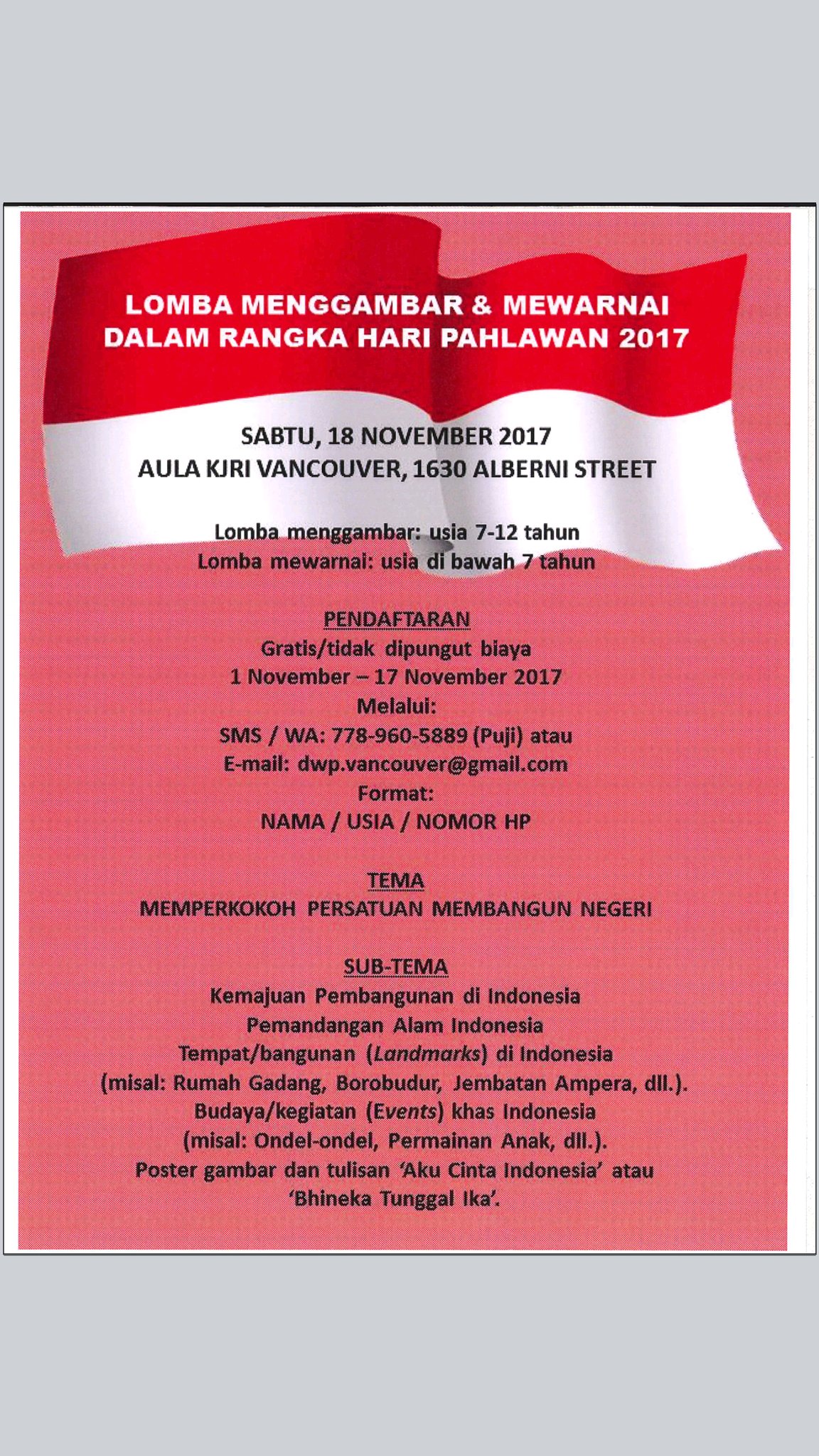 Uživatel Indonesia in Vancouver na Twitteru: „Pengumuman Lomba Menggambar dan Mewarnai dalam Rangka Memperingati Hari Pahlawan Tahun 2017 di Vancouver.… “
