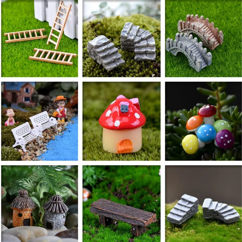 Lucu Village Rumah Miniatur Taman Jembatan Mini Tangga Kerajinan Patung Tanaman Pot Ornamen Taman Miniatur Taman Peri Perlengkapan|Patung-patung & Miniatur| - AliExpress