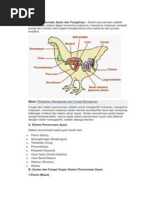 Sistem Pencernaan Ayam Dan Fungsinya