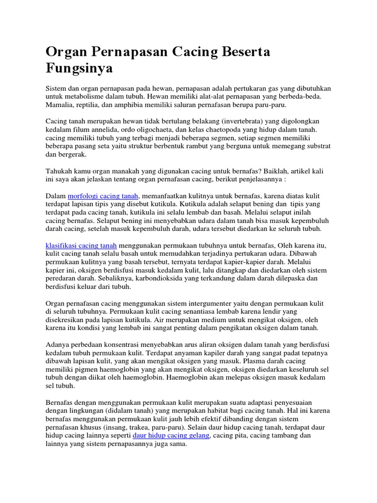 Alat Pernapasan Pada Cacing Tanah Yang Penting Kamu Ketahui Bersama - alat pernapasan