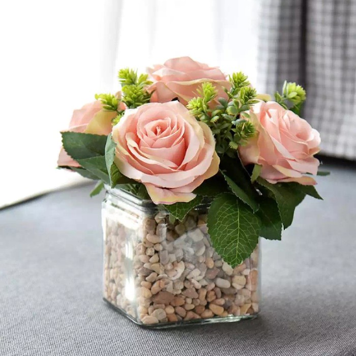 1 set Vas Bunga + Pasir + Bunga 6 tangkai - Dekorasi Rumah - 540517209