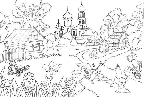 Gambar Pemandangan Desa Untuk Diwarnai