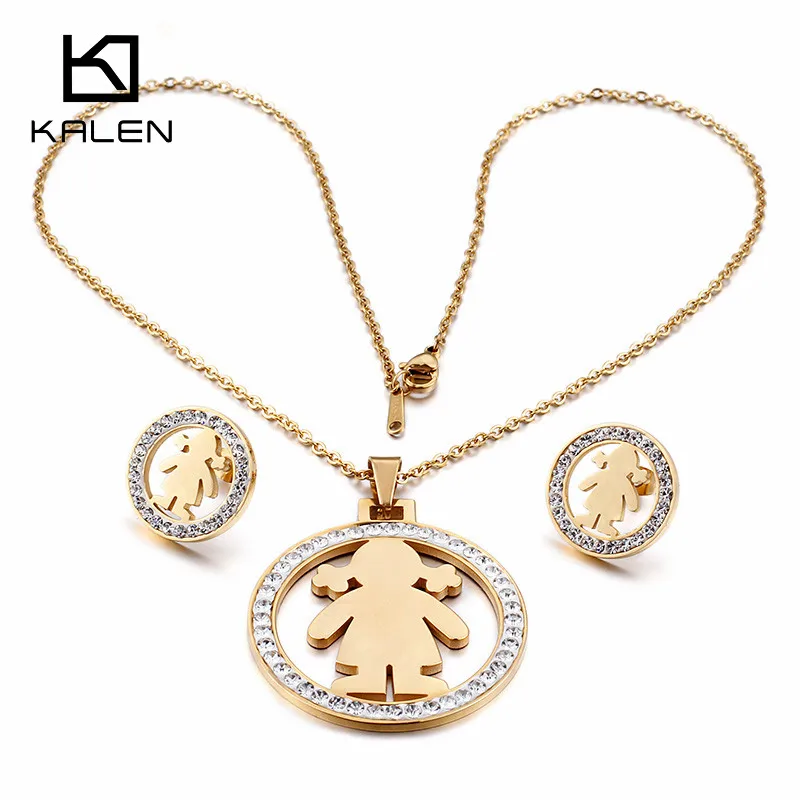 Kalen Wanita Bulgaria Emas Set Perhiasan Berlian Imitasi & Baja Tahan Karat Gambar Kartun Gadis Liontin Kalung & Anting Anting Set 2017|jewelry set rhinestone|set rhinestonesgold jewelry set - AliExpress