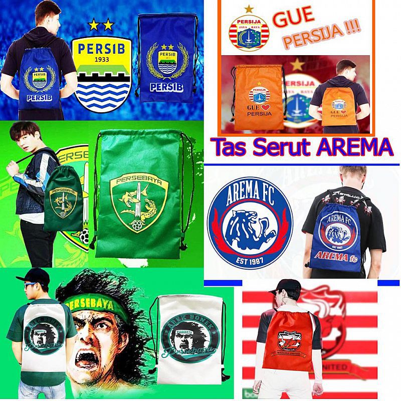 Tas Serut Klub Bola Lokal Indonesia Persebaya Persib Arema Persija Madura Lucu Unik Perlengkapan Sek | Shopee Indonesia