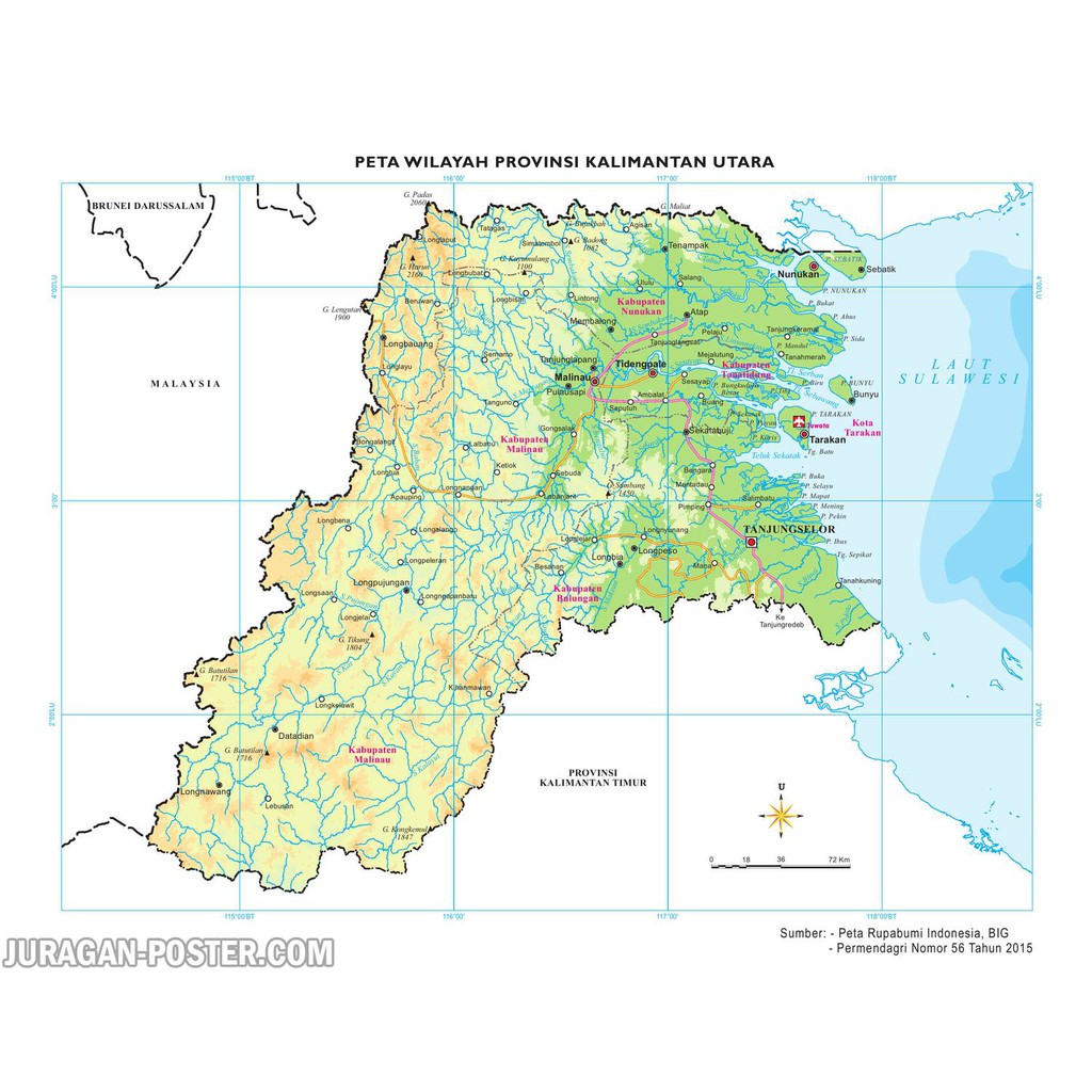 Peta Dinding Provinsi Kalimantan utara Ukuran 120x150cm Bahan PET | Shopee Indonesia