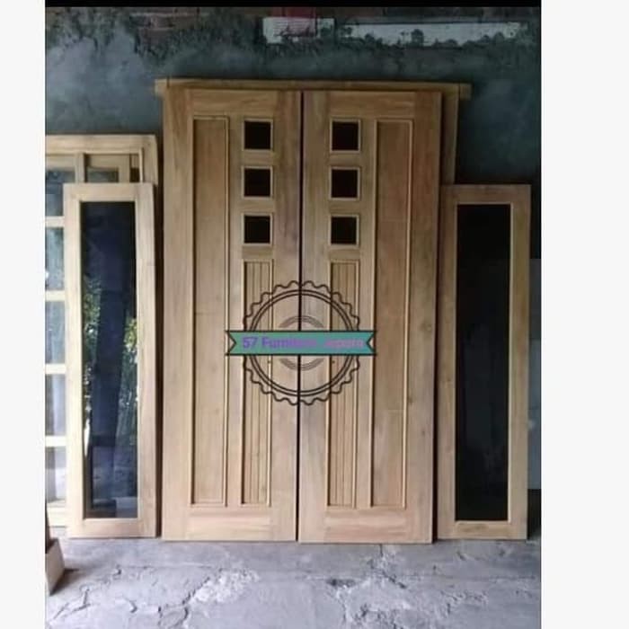 Pintu untuk rumah minimalis + jendela kaca + kusen jati mentahan | Shopee Indonesia