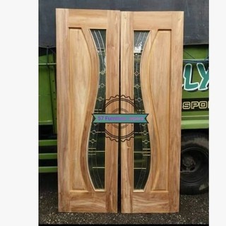 Pintu Rumah Murah Model Daun Kupu Tarung Kaca Patri | Pintu Double