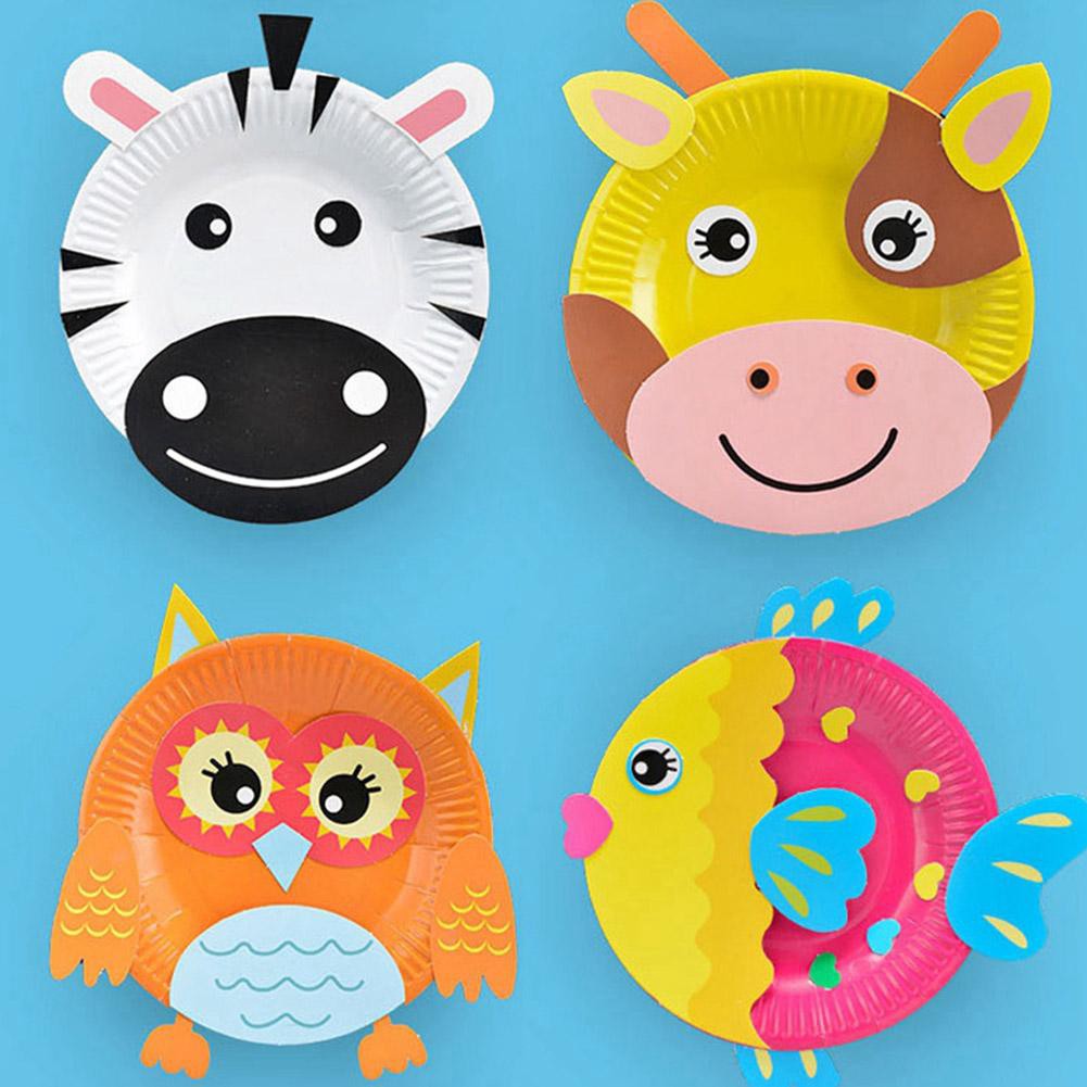 Hewan Gambar Kartun Piring Kertas Gambar DIY Buatan Tangan Kerajinan Mainan Bahan Paket Anak Kreatif Mainan Puzzle Warna warni Piring Kertas|Kerajinan Mainan| - AliExpress