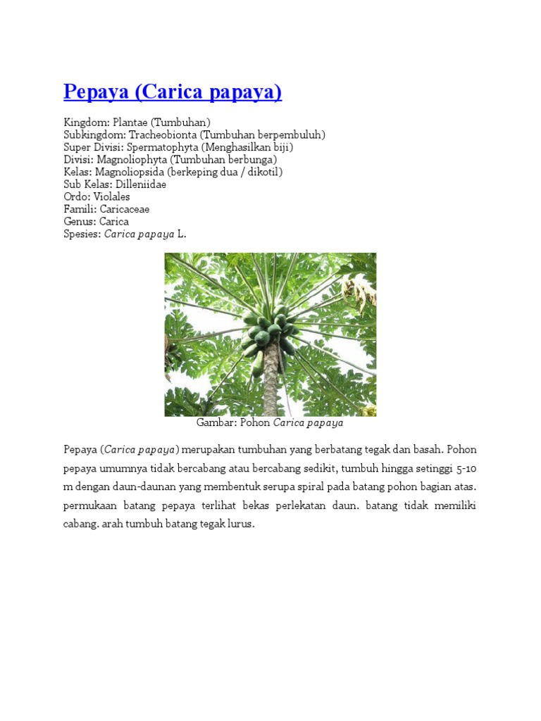 Morfologi Dan Klasifikasi Tanaman Pepaya - Ilmu Pertanian