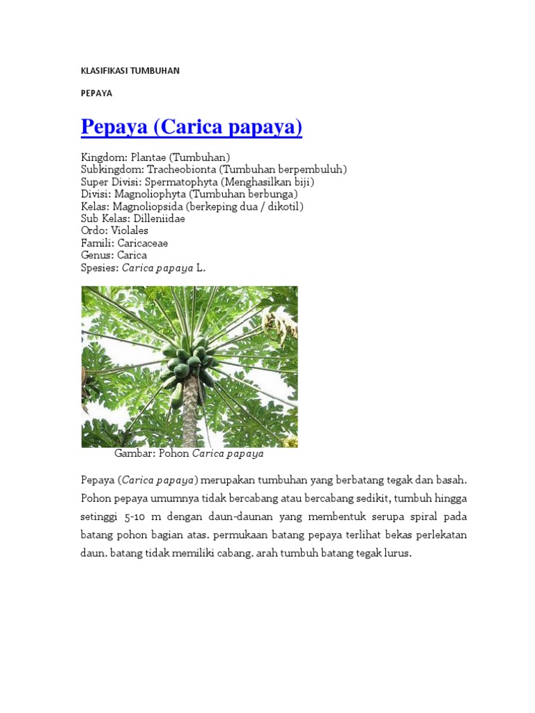 KLASIFIKASI TUMBUHAN BERBIJI: Pepaya (Carica papaya)