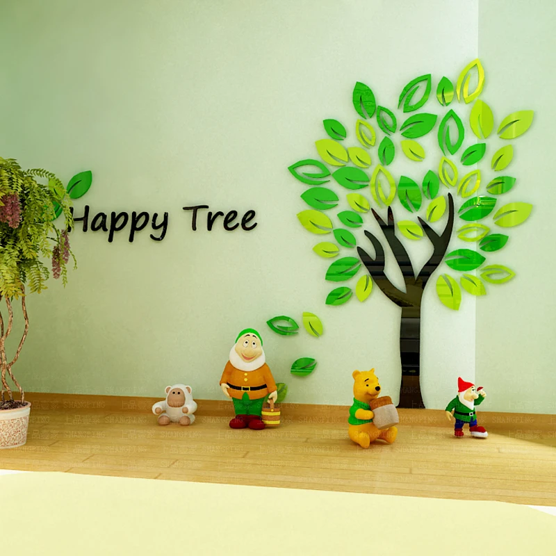 Happy Tree Akrilik 3D Stiker Dinding untuk Kamar Anak TK Besar Pohon Diy Dekorasi Kamar Tidur Stiker Dinding Kartun|wall sticker|wall stickers childrenstickers children - AliExpress