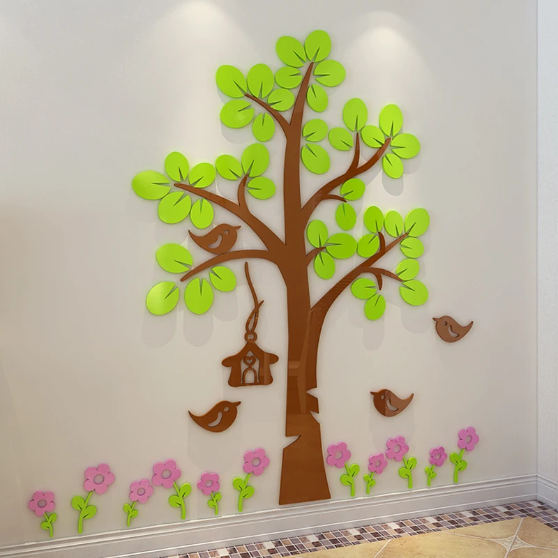 Baru Pohon Bunga Tiga Dimensi Akrilik Stiker Dinding Kartun Kamar Anak anak TK Kreatif DIY Dekorasi Rumah 3D Stiker|acrylic wall sticker|wall sticker3d sticker - AliExpress
