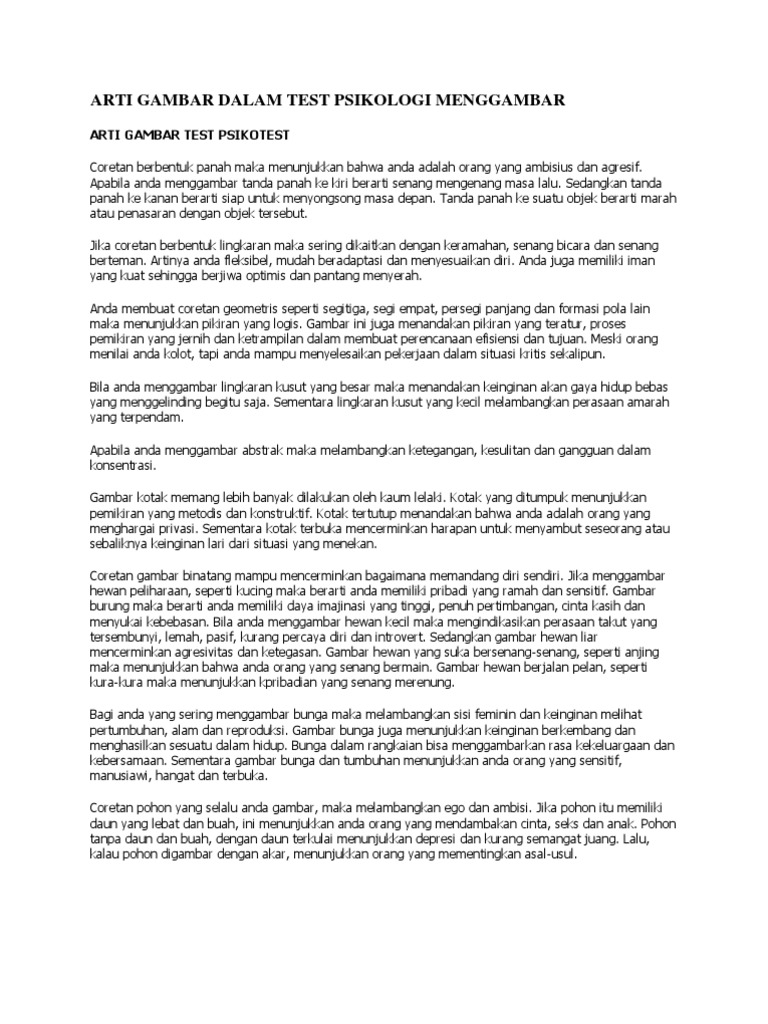 Arti Gambar Dalam Test Psikologi Menggambar