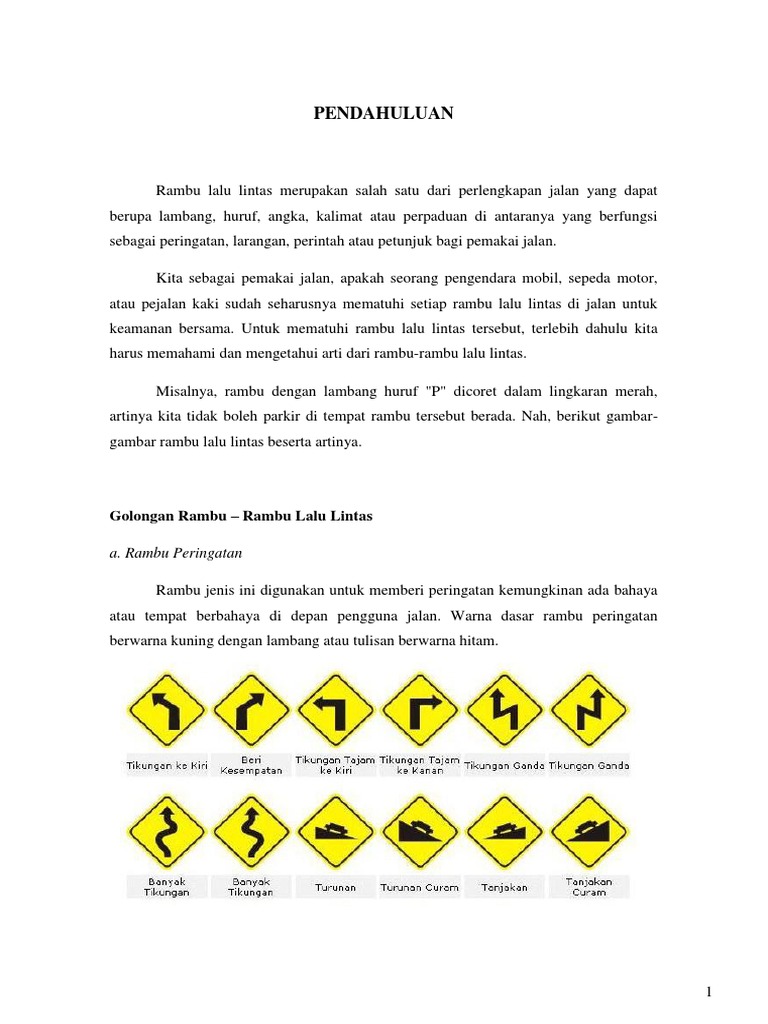 DOC) RAMBU LALU LINTAS Pertama : Rambu Lalu lintas Peringatan | rio fresh - Academia.edu