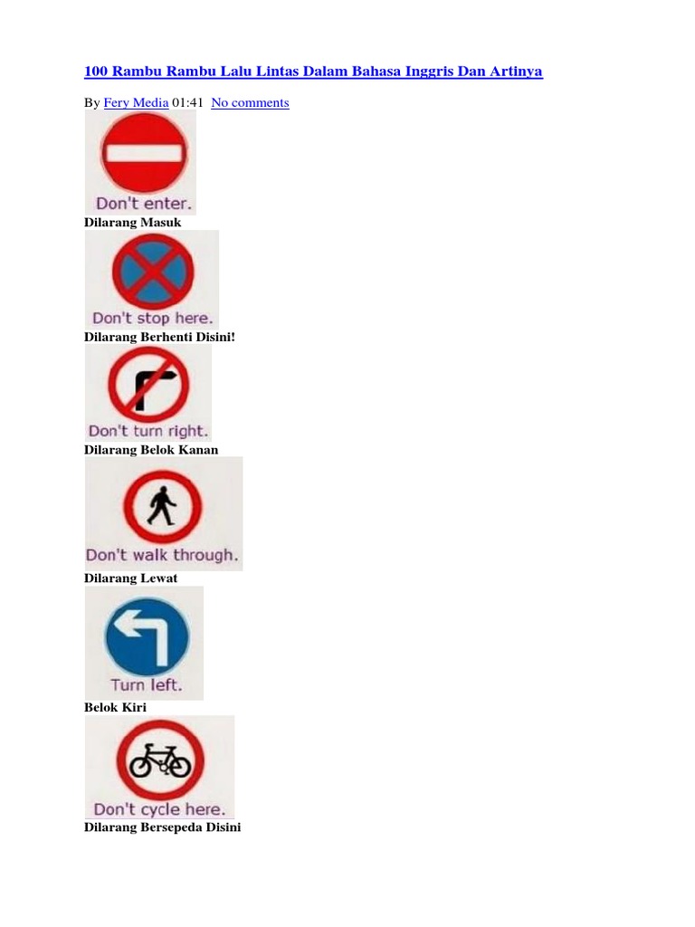 100 Rambu Rambu Lalu Lintas Dalam Bahasa Inggris Dan Artinya [6ngedv5y86lv]