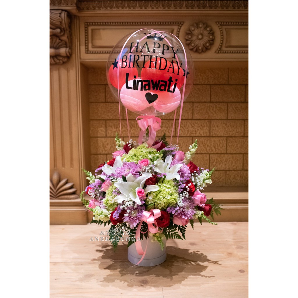 Rangkaian Bunga Asli Balon Baloon Fresh Flower Birthday Ulang Tahun Anniversary Pembukaan Toko Mawar | Shopee Indonesia