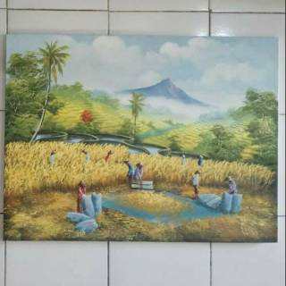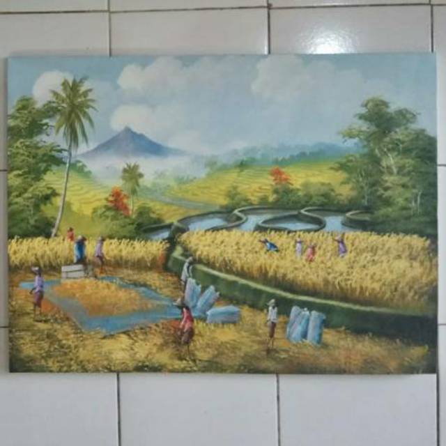 Lukisan realis suasana panen padi disawah | Shopee Indonesia