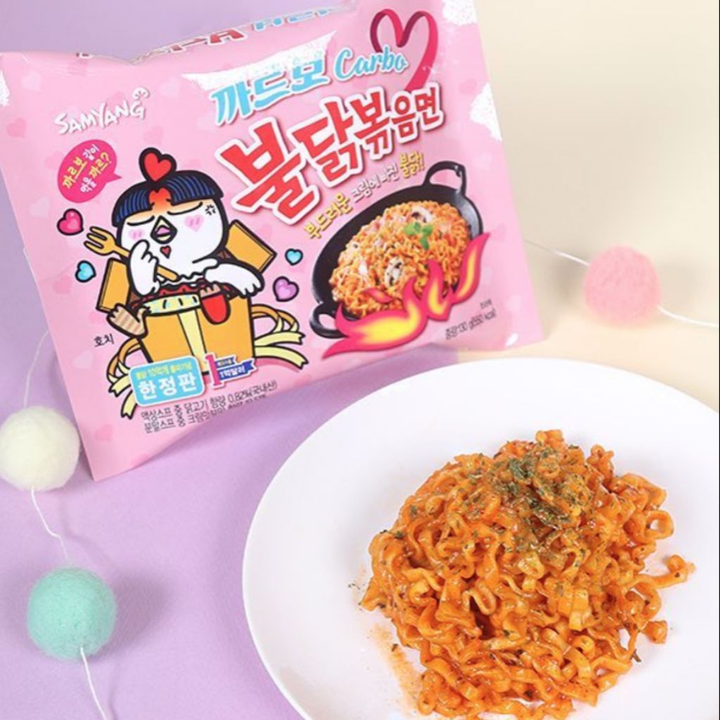 Samyang Buldak Carbonara Pink (Mie Korea), Makanan & Minuman, Makanan Instan di Carousell