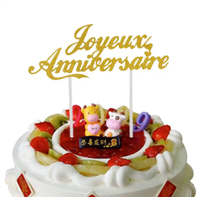 Disesuaikan Bahasa Perancis Kue Bendera Selamat Ulang Tahun Puncak Kue Ulang Tahun Pernikahan Pesta Dekorasi Joyeux Aurélie| | - AliExpress