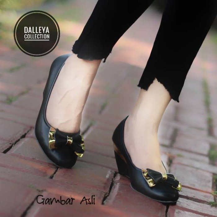 Kekinian GURU - Dalleya sepatu pantofel wanita wedges hak tinggi simple polos Terbaru | Shopee Indonesia