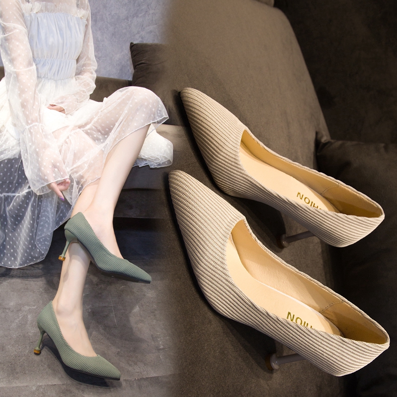 Sepatu wanita karir baru tahun 2019 Sepatu hak tinggi ringan dengan jahitan dari jahitan | Shopee Indonesia