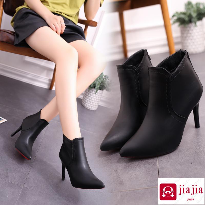 Boots pendek, Sepatu hak tinggi, Hitam tumit halus, 2020 musim dingin sepatu wanita baru, Musim semi dan musim gugur sepatu tunggal, Menunjuk menunjuk sepatu bot telanjang telanjang | Shopee Indonesia