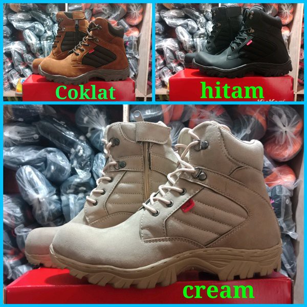 Shopee: Jual Kickers Sepatu Kerja Lapangan Pria / Safety Boot Ujung Besi / Tracking Adventure Motor Cowo