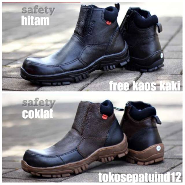 sepatu boots safety FLAT BESI kulit asli sepatu kerja lapangan cowok, Olshop Fashion, Olshop Pria di Carousell