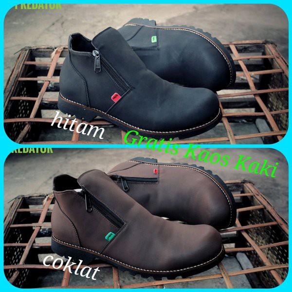 Jual sepatu boots pria kickers safety zipper kulit hitam sepatu kerja lapangan pria sepatu boot pria cek harga di PriceArea.com