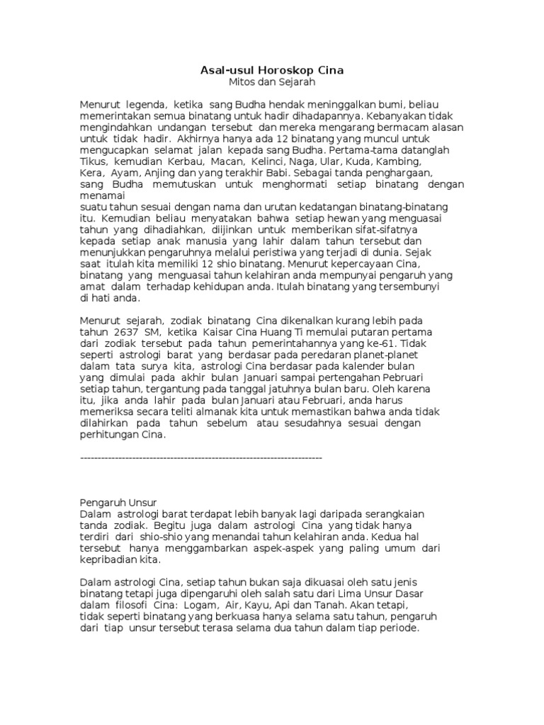 Asal Usul Horoskop China