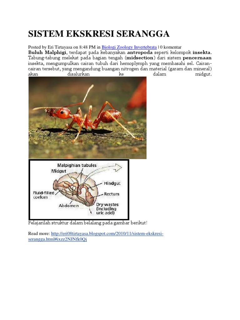 Sistem Ekskresi Tubulus Malpighi Serangga | Biologi | Sridianti.com