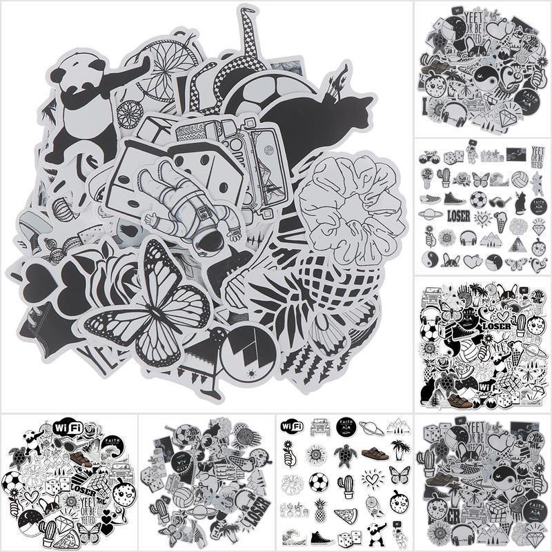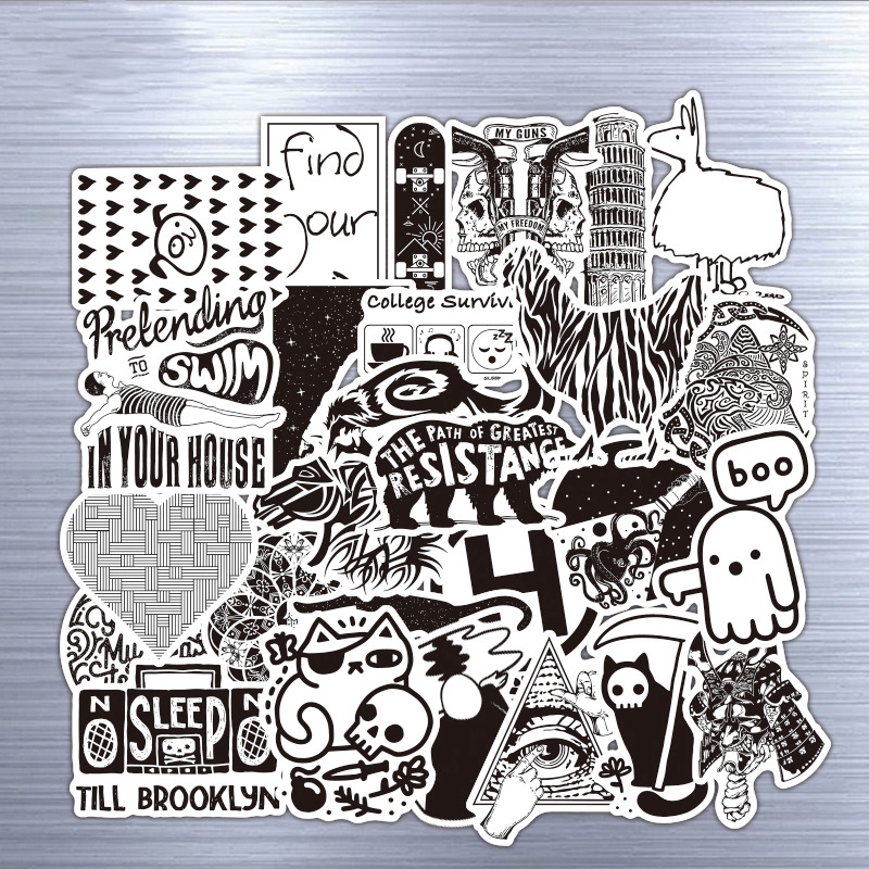 50Pcs/set Black White Graffiti Waterproof Refrigerator Skateboard Decoration Mixed Decals Laptop Sticker | Shopee Singapore