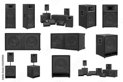 Speakers audio loud system modern black sound system set. 3D rendering - Buy this stock illustration and explore similar illustrations at Adobe Stock | Adobe Stock