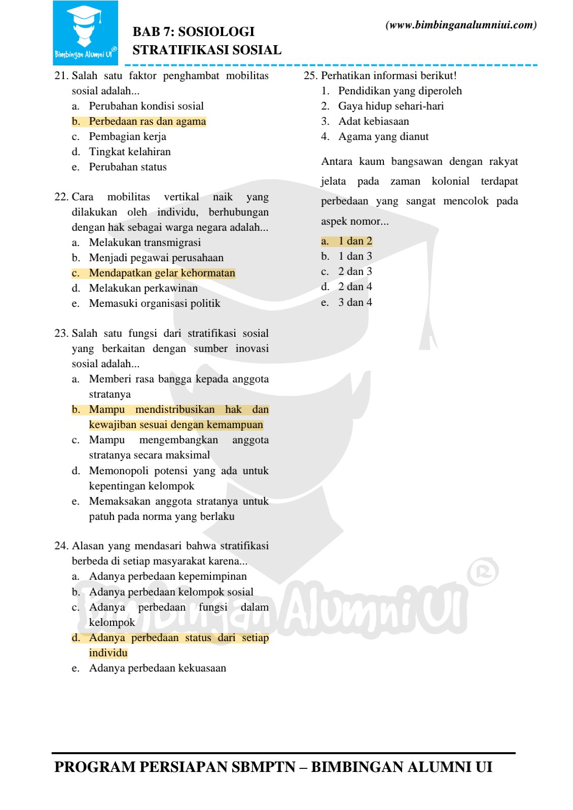Soal Sosiologi : Stratifikasi dan Diferensiasi Sosial dan Kunci Jawaban Lengkap - Muttaqin id