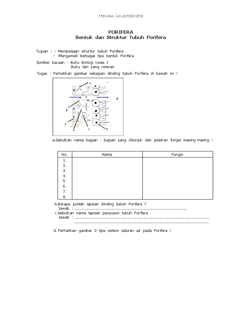 tolong dijawab struktur tubuh porifera - Brainly.co.id